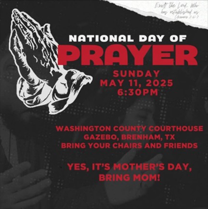 On May 11, 2025 (Mother’s Day) bring mom and come join us at the Washington County Courthouse pavilion as local churches come together for praise & worship, and pastors lift up our community and our nation in prayer.