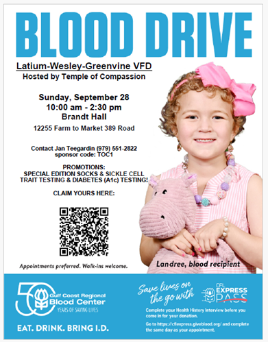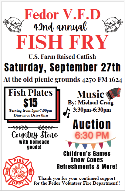 As part of expanding the Shelby Fire Station, the Shelby Volunteer Fire Department will be holding a DRIVE THRU PORK STEAK DINNER on Wednesday, October 1st at Harmonie Hall! Tickets are sold in advance only, please purchase tickets before September 24. For more information or to buy tickets, contact any SVFD member or call 979-251-0826. Pick-up on […]