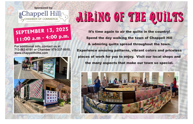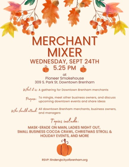 The public can decorate downtown with colorful scarecrows and have the opportunity to win cash prizes. Online registration is open now at www.downtownbrenham.com/scarecrows and continues through September 12th. All individuals, schools, clubs and organizations are welcome to participate. Scarecrows can be set up starting on September 25th and must be in downtown by September 29th at 6 p.m. Voting […]