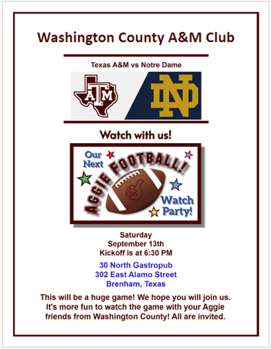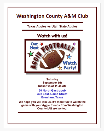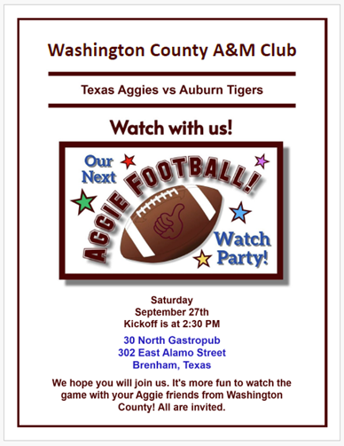 The Brenham Evening Lion’s Club meets the 1st and 3rd Tuesday of each month at The Cannery Kitchen with the meal starting at 6:30 PM. September 2 - live demonstration of the KidSight program that the Lions use to assist the Brenham schools with eyesight evaluations. September 16 - Washington County EMS to present a […] Sons of Confederate Veterans upcoming meeting; the speaker will be Derrick Birdsall, Director, Sam Houston Memorial Museum in Huntsville. He will speak about Sam Houston, Jr., and his Confederate service. Derrick will bring with him a collection of drawings/sketches by Sam Jr. that he made during his Confederate service. Please join the meeting on Tuesday, […] |