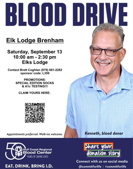 The Brenham Evening Lion’s Club meets the 1st and 3rd Tuesday of each month at The Cannery Kitchen with the meal starting at 6:30 PM. September 16 - Washington County EMS to present a “Hands Only” CPR program. This meeting will start earlier with the meal at 6:00 PM Make your reservations to attend any […]