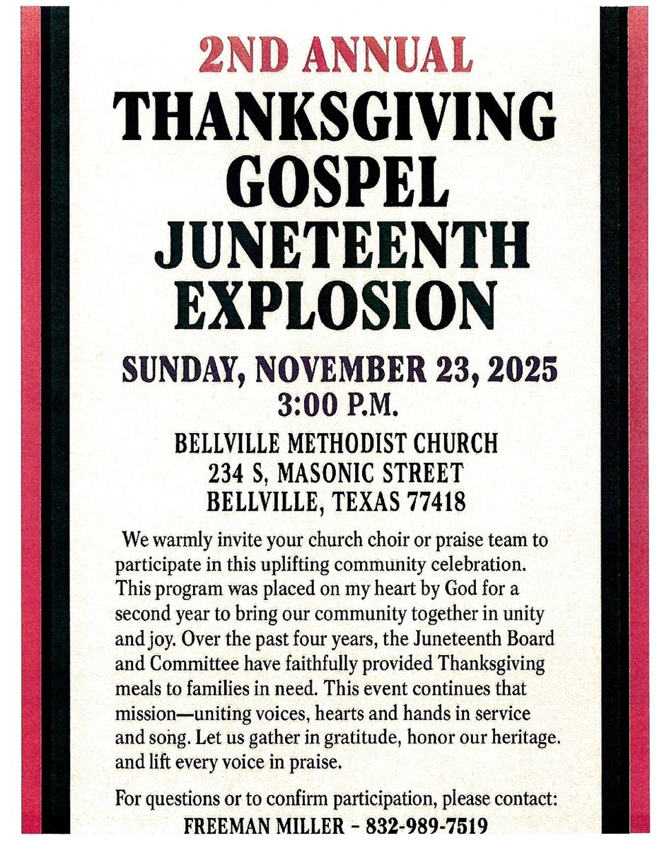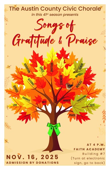 The Brenham Chorale, is beginning rehearsals for its 51st year of concerts, on September 29. The rehearsals are held on Monday nights, 5:30-7:00 PM at St. Peter’s Episcopal Church, in Brenham. Messiah will be held on Monday, December 8, at the church with reception following. The Director is Dr. Joanne Clark. A Spring concert that includes the […] |