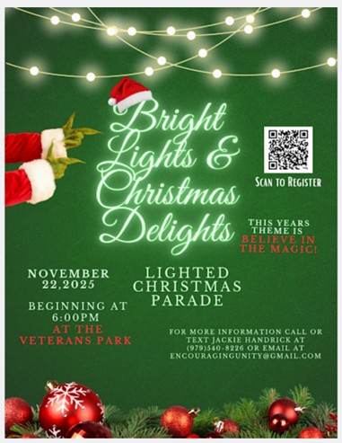 The Fortnightly Club of Brenham is getting ready for their annual Christmas Decorating Contest. Participants can enter the contest starting November 23, and going through December 7. Entries can be sent to Kathryn at 979-277-5893, or by going to the Fortnightly Club’s Facebook Page. Categories are Fun, Elegant, and Religious. Each category has two divisions: […] |