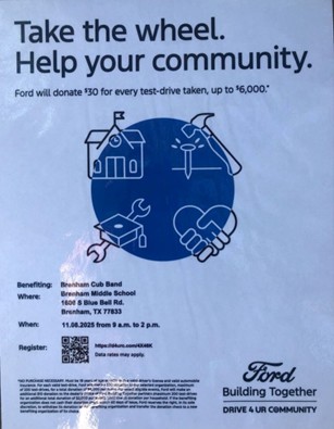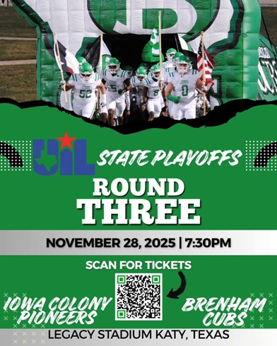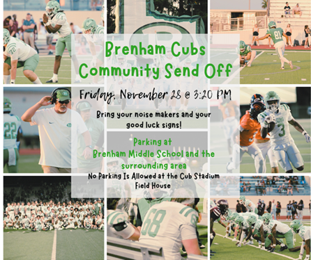 Brenham Cubs community send off will be Friday at 3:20 PM. They will leave cub stadium field house and go down Niebuhr street towards 577. Pease park in the middle school drop off/pick up lines and save street parking for those who can not walk far. No parking is allowed at the Cub Stadium Field […] |