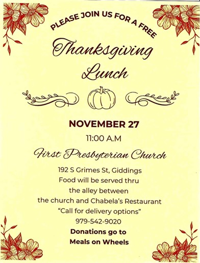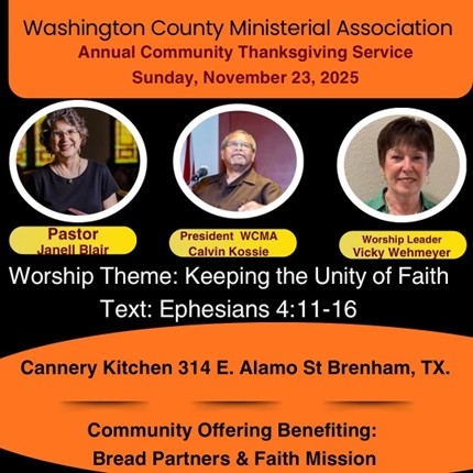The Washington County Ladies Lions will meet Monday, November 24, at Noon, at the Cannery Kitchen. Featured speaker is District Governor Kelli Higgins of Giddings. Members are reminded to bring a food item, used eyeglasses, socks, blankets, Christmas Magic gifts, and loose change. The public is invited to attend, RSVD is not required. Lunch is […] |