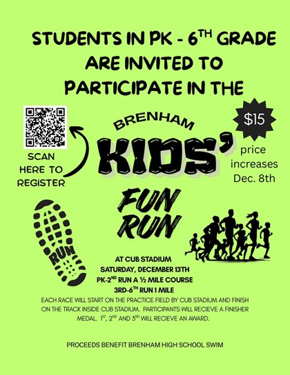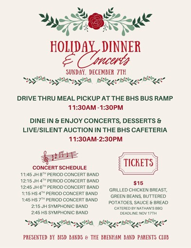 THE BRENHAM CUB BAND WILL COMPETE AT THE STATE MARCHING COMPETITION AT 5:30 PM |