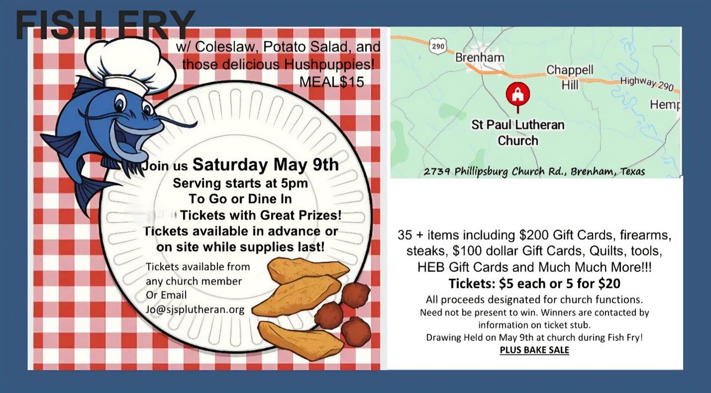 St. Paul Lutheran Church hosting a Fish Fry (Brenham)