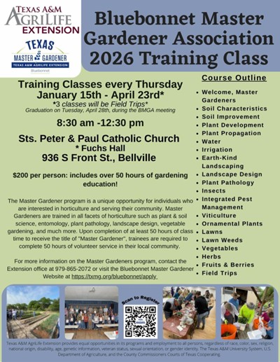 Bluebonnet Master Gardener Association Training Class (Bellville)