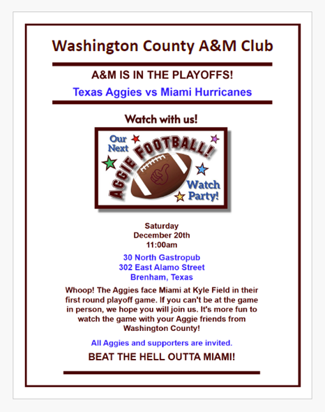 Washington County A&M Club Aggie Football Watch Party (Brenham)