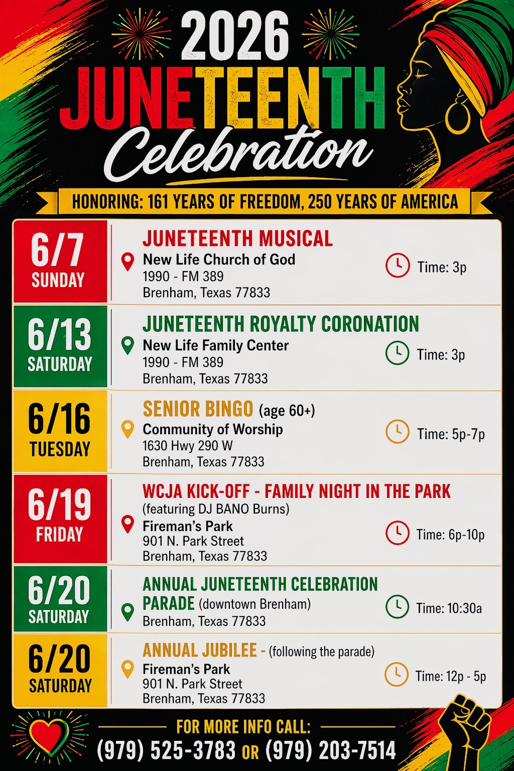 Juneteenth Celebration 2026 (Hearne) June 19 - June 20 Godfrey Gentry Westside Park Hearne, TX, United States