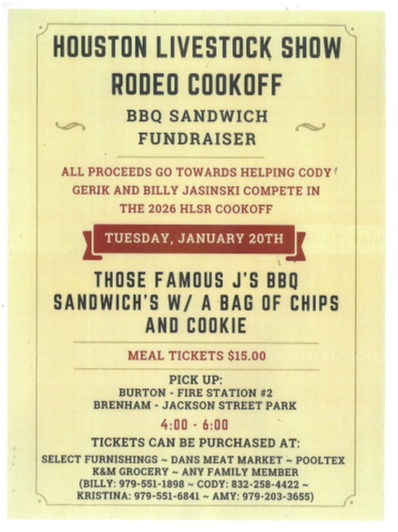 Brenham Fire Department Training Center 1101 Hwy 290 West, Brenham, TX, United StatesINCLUDES A GUN DRAWING & 50/50 DRAWING