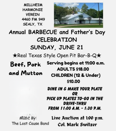 Barbecue and Father’s Day Celebration at Millheim Harmonie Verein (Sealy)