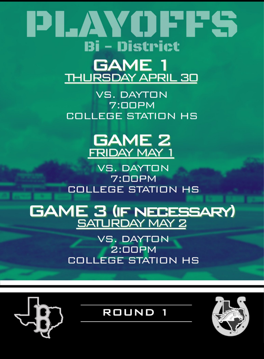 The Brenham Cub Baseball Team has set their Bi-District Playoff Series against Dayton. They will play a best 2 out of 3 series.