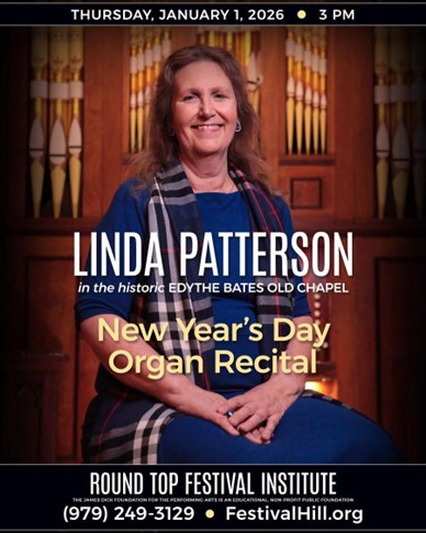 New Year’s Day Organ Recital presented by Linda Patterson (Round Top)