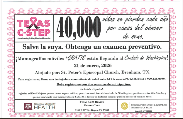 Debe preinscribirse con dos semanas de antelación ... Para concertar tu cita, llama a un Trabajador Comunitario de Salud antes del 7 de enero