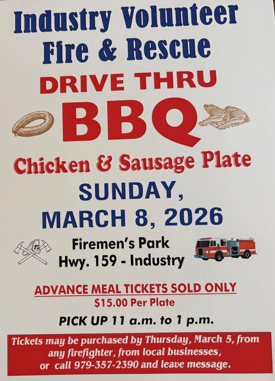 ADVANCE MEAL TICKETS SOLD ONLY - PURCHASE TICKETS BY MARCH 5th FROM ANY FIREFIGHTER, LOCAL BUSINESSES, OR CALL 979 357-2390 AND LEAVE A MESSAGE