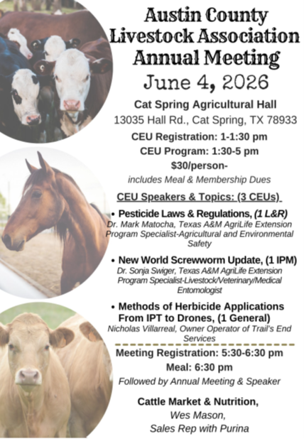 American Legion Quade-Werchan Post #338 and Auxiliary meeting; Thursday, June 4, 6 PM fellowship, 6:30 meeting, at the post hall in Round Top. |