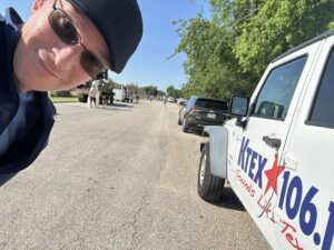 Lee County Fair Parade Eilish Barker May 12, 2025 KTEX on the Road Ryan Stone is waving at you, kicking off the Lee County Fair with the Parade in Giddings!!