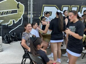 She got introduced to the football, basketball, tennis, cross country teams, the buff band and the cheerleaders!