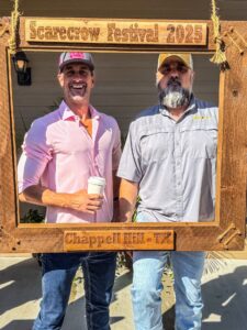 Cowboy Dave Bayless and David Bugenske just secured all Christmas gifts for their colleagues from the Scarecrow Festival in Chappell Hill. (Shhhh they are all getting free puppies and dipping sauce samples)